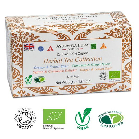 Colección de infusiones ayurvédicas (Vata, Pitta, Kapha y Tridóshico)Proveedor:PURAPrecio habitual €7,00 EURPrecio habitualPrecio unitario / por